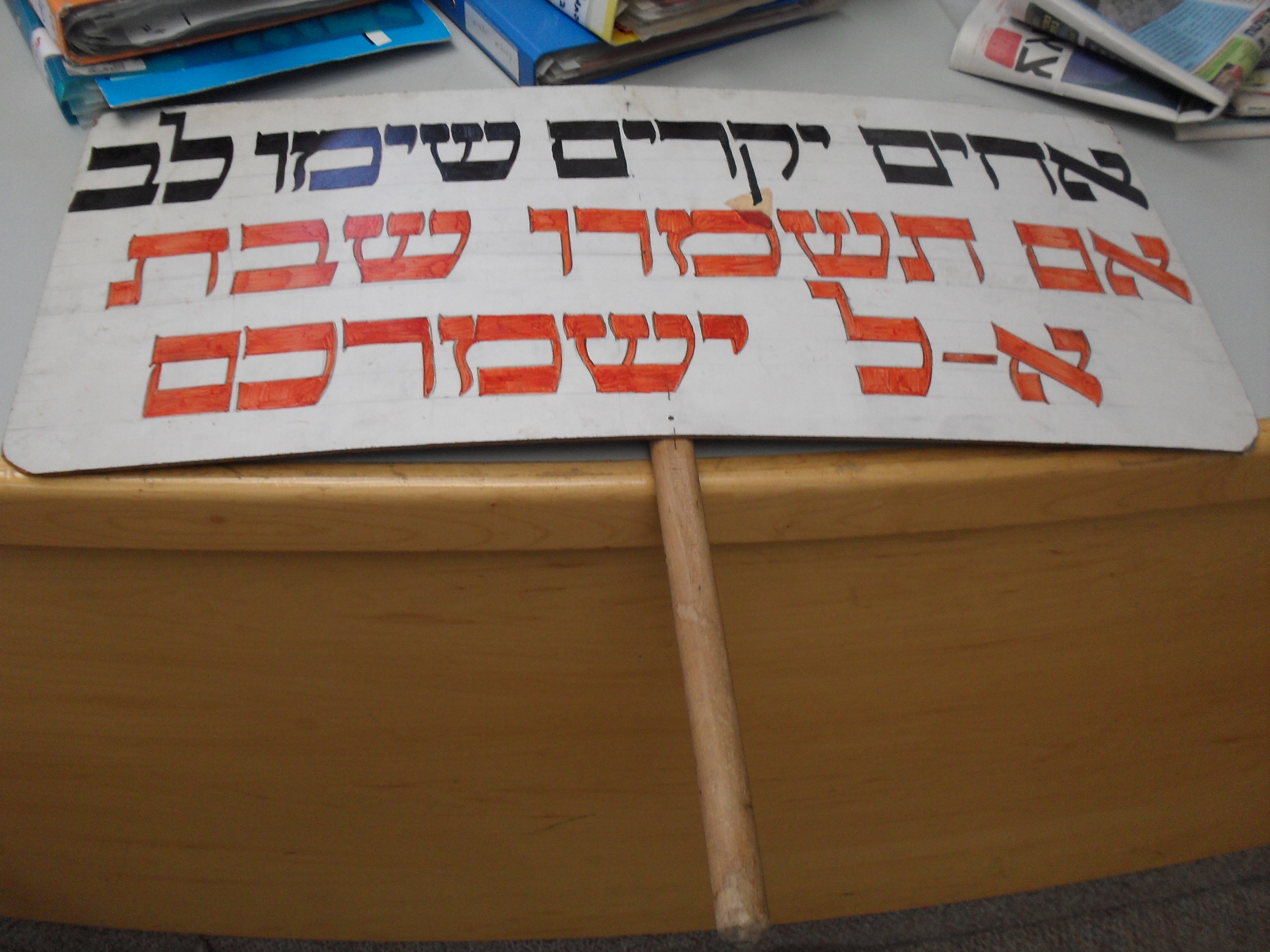 ובדיוק בדיוק באותו שבוע, הגיעו בעזרת ה' בשעה טובה מהדפוס השלטים החדשים, השלטים שאותם כל אחד מאיתנו יכול בעזרת ה' לתלות בביתו, במכוניתו, בכל מקום שאפשר.