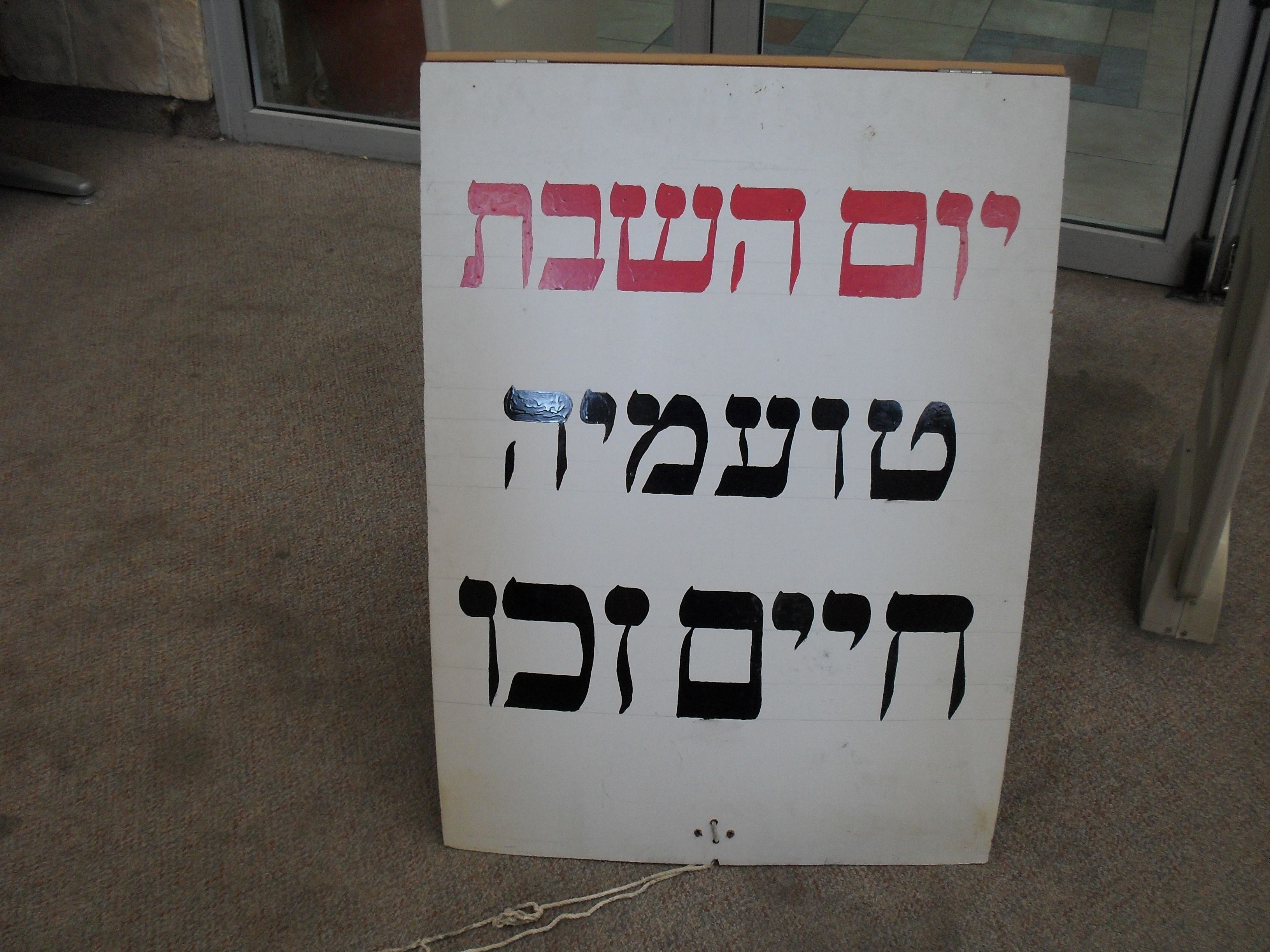 ועוד סוג של שלטים הובא לידיעתנו השבוע, על ידי הספרנית היקרה גברת מרים בולאג, ספרנית מדרשית עמליה בירושלים. שלטים אלו, אף הם שלטים היסטורים, הם השלטים שהכין ר' בן ציון בלומינג ז"ל, כאשר עלה מארצות הברית, והיה נוסע איתם בימי שישי ברחבי גוש דן, במכונית שבוקעים ממנה שירי שבת.