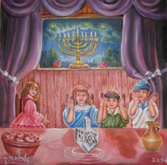 ציור לחנוכה/ חנוכייה / ציירה: אהובה קליין© [שמן על בד]